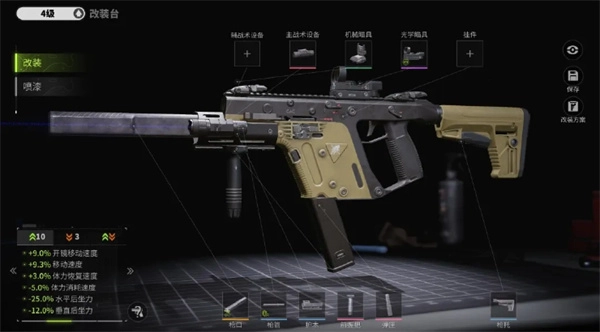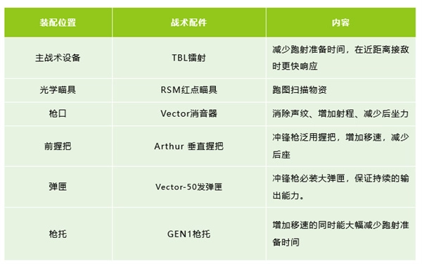 Vector冲锋枪本身就有削甲值的强化效果,再加上它射速极快、后坐力极低的特点,在工厂这类室内近距离作战的地图里,具备很强的战斗能力。所以下面这套改装方案,重点是提升移动速度、优化体力消耗情况,同时缩短跑射准备时间,这样在近距离突然遭遇敌人时,就能更快地开火,行动也会更灵活。