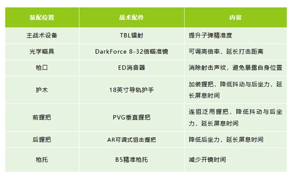 龙骑兵狙击步枪在地图里获取途径多,所需组装的部件数量少,改装时花的钱也不多,很适合刚接触游戏的新人。选光学瞄具的时候,除了大家常用的隐蔽型Mars 8倍瞄准镜,还能考虑HTHEG 4倍高级瞄准镜,它能标记50米范围内被瞄准的敌方目标,让目标的血条显示出来持续5秒,对萌新来说,用它找山林里藏着的敌人挺合适的。