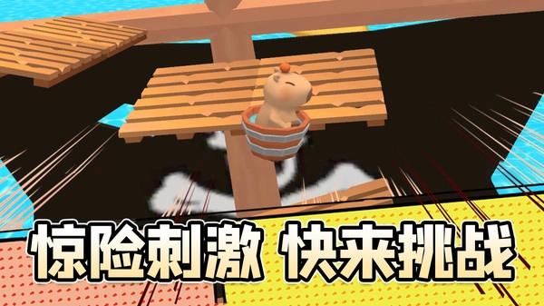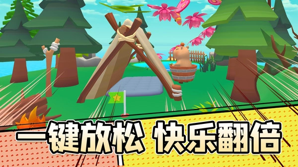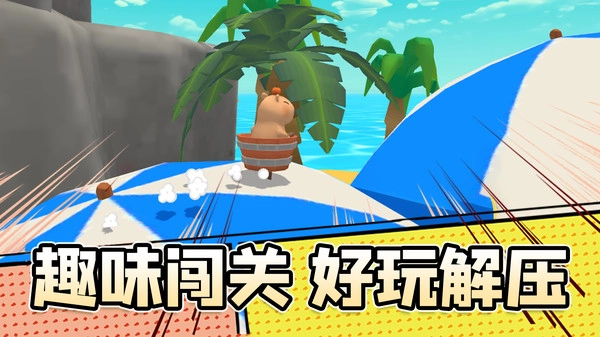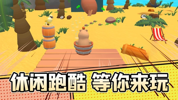可爱的角色形象:玩家操控的水豚形象呆萌又可爱,圆滚滚的身体、天真无邪的表情,每一个动作都透着憨态可掬,非常有治愈感和亲和力。