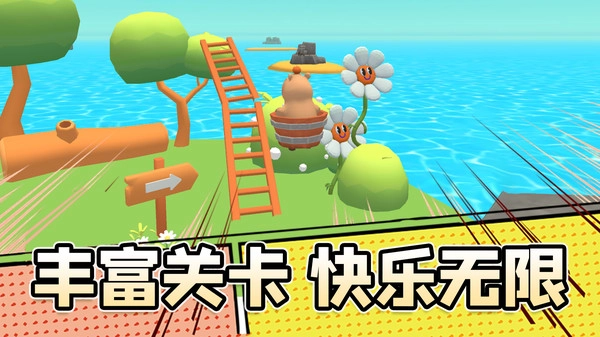 丰富多样的场景变换:游戏场景的垂直跨度极大,且充满多元奇幻色彩,神秘的谷底、梦幻的云端、悬浮的岛屿、糖果般的建筑以及彩虹滑道依次展现,每个场景都隐藏着独特的互动元素与挑战,让人始终保持新鲜感。