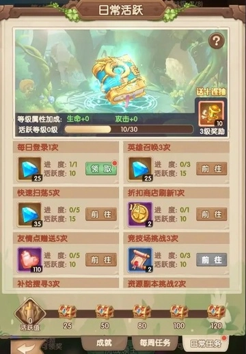 日常任务和日常活跃宝箱每日0点刷新