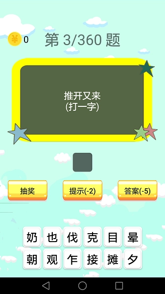 在游戏里,用户能够选择猜字谜的功能,以此猜出谜题所对应的汉字。