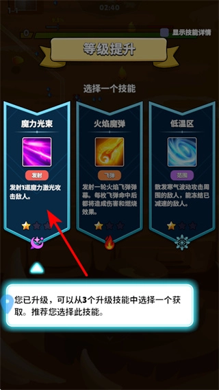 在角色等级提升的节点挑选技能时,像魔力光束这类技能能够强化角色的攻击能力,选择过程中要依据实际的战斗需求以及技能自身的效果来合理搭配。
