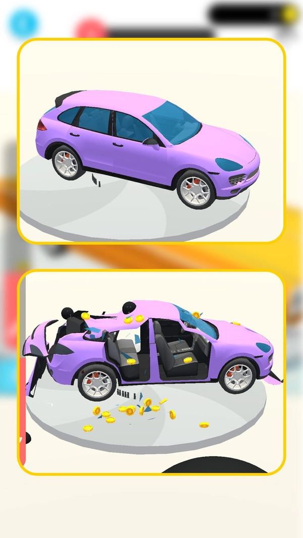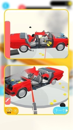 游戏支持玩家借助各类工具开展自由破坏,不存在固定的操作步骤,你既可以从外观着手拆解,也能够直接将车身砸成碎片。这种毫无限制的操作方式,让玩家得以切实感受到“想怎么拆就怎么拆”的畅快,压力也能在瞬间得到释放。