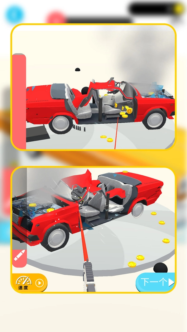 破坏过程中获得金币,可用于购买新车辆和新道具。