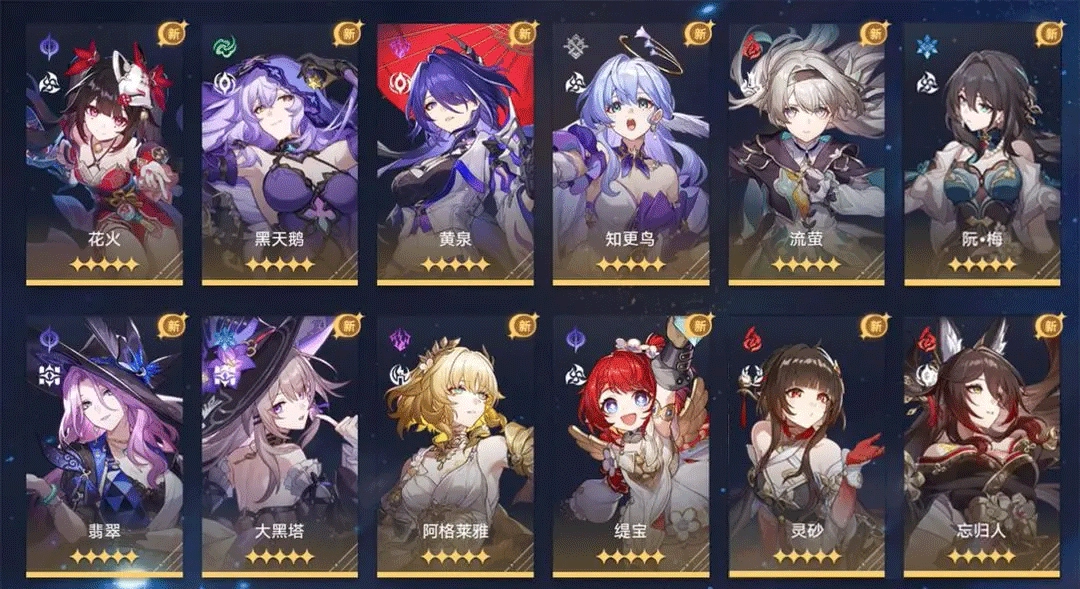 常驻五星角色包括:姬子、瓦尔特、布洛妮娅、杰帕德、克拉拉、彦卿、白露。