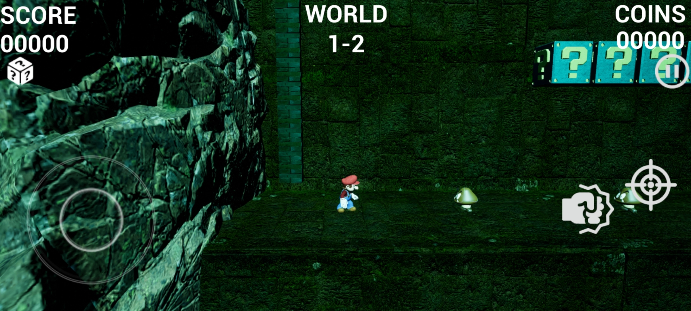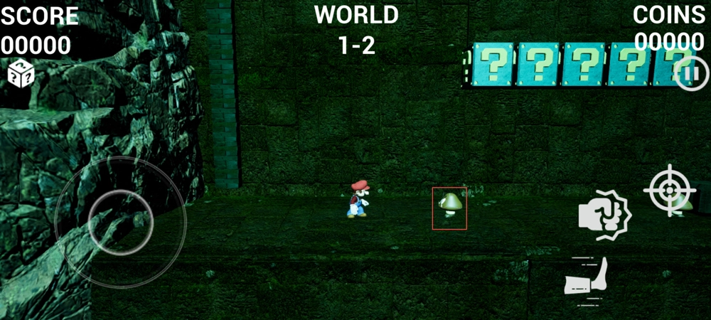 进入超级马里奥3D世界最新版本游戏后,左侧为方向控制按钮,右侧则是攻击与瞄准功能按钮。