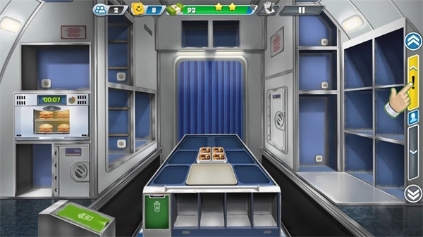 用奖励升级厨房设备,做好食物库存管理,保证飞行期间供应充足,还能解锁更多城市与美食。
