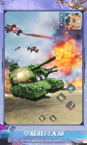 重装上阵是一款玩起来非常爽快的对战游戏,游戏采用了3D卡通风格的画面设计,其中的各种战机以及场景都刻画的非常精美,各种战斗特效都刻画的很炫酷给各位玩家带来视觉上的享受。