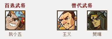 阮小五(首选武将),王义、樊瑞(替代武将)