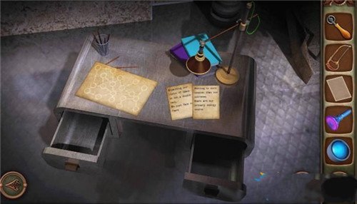 2、点击右边的小楼梯,打开两个梯子,我们可以得到一个小锯子,一张纸,一个扳手