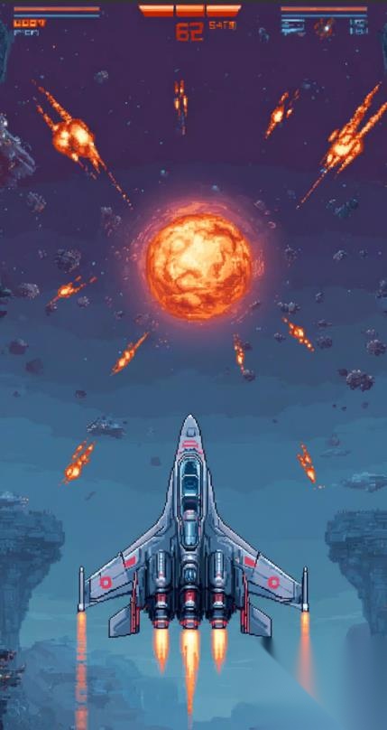 这是一款结合了经典街机风格与现代视觉效果的竖版太空射击游戏。你将化身为一名银河战士,驾驶着装备先进的未来战机,在无尽的星际战场上,对抗如潮水般涌来的敌舰、巨大的BOSS以及破坏性的小行星风暴。游戏节奏明快、操控流畅,并且伴随着震撼的子弹地狱战斗场景和华丽的爆炸特效,使得每一场战斗都让人热血沸腾。游戏中包含丰富的关卡、升级系统、多样的飞船选择及强大的武器等待玩家解锁,随时准备开启一段激动人心的宇宙探险旅程!