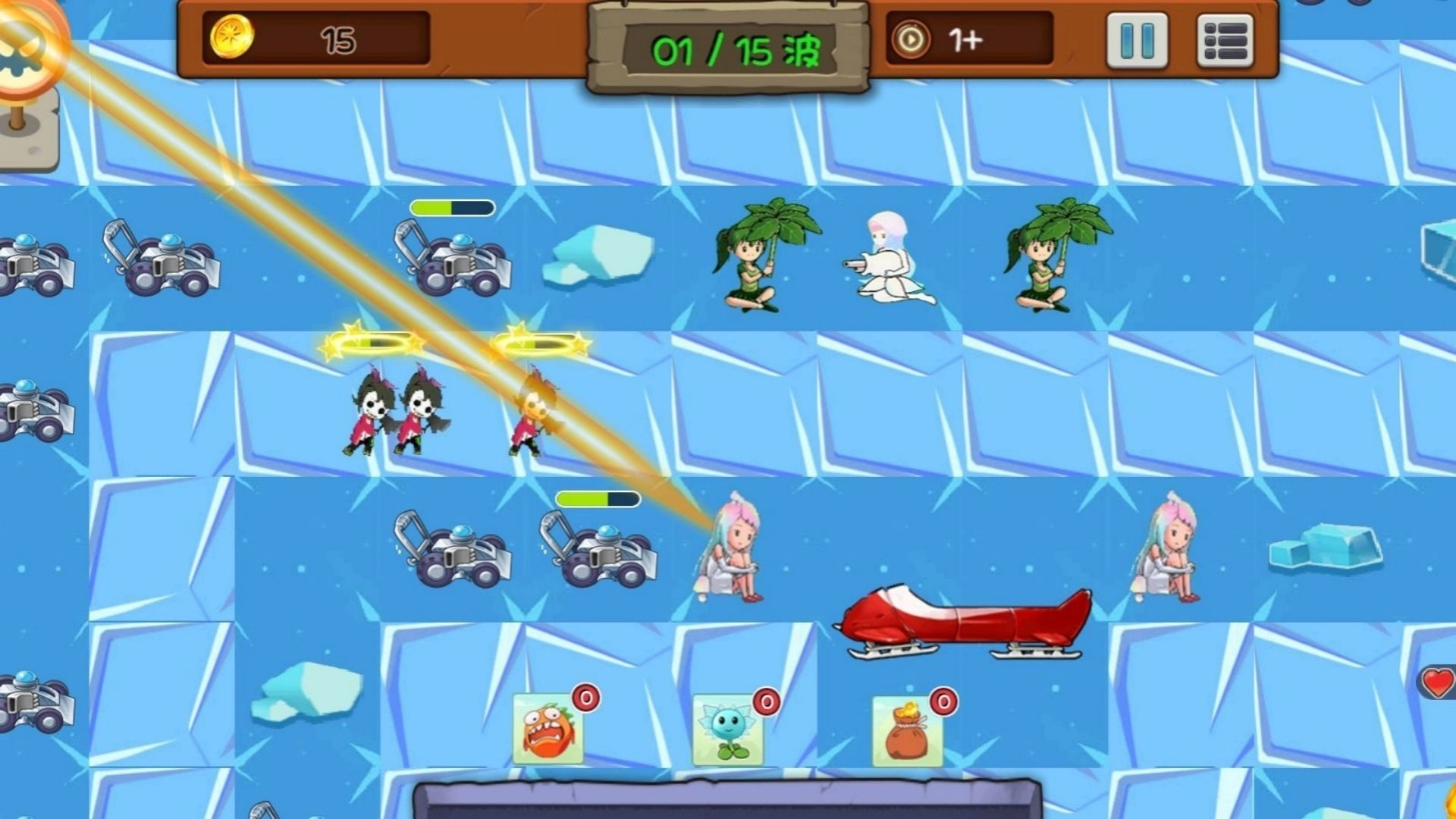 部分僵尸拥有特殊能力,玩家得灵活调整植物娘的阵容,像用范围攻击的植物来对付成群的僵尸,或是借助控制类植物来减慢Boss的移动速度。