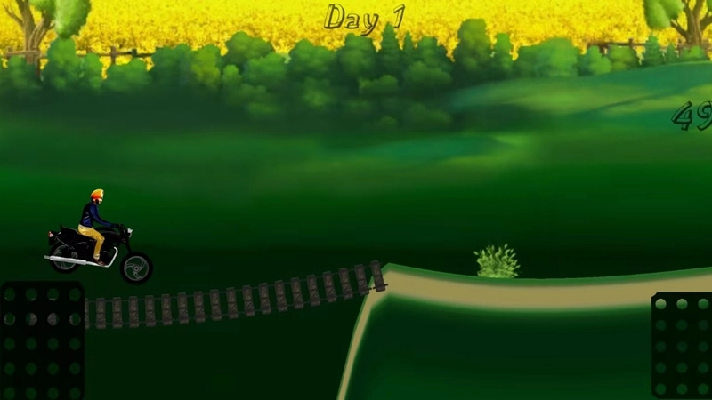 遇坡提前加速,上坡保持动力,下坡轻控刹车,维持摩托平衡。