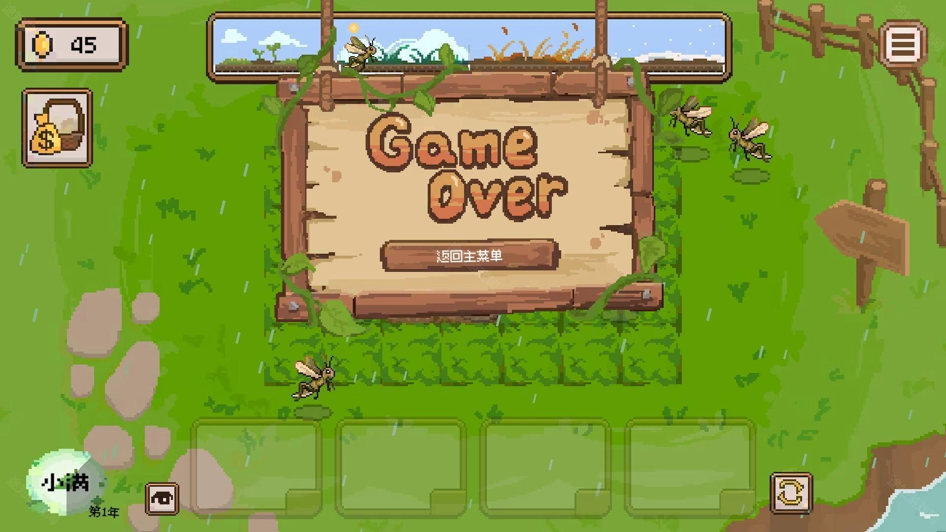 4、如果植物被蝗虫吃完了,那游戏就结束了。