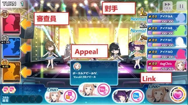 玩家需要选择不同的Appeal技能来吸引评审,以此提升评审的满足度(对这个翻译的准确性暂不确定)。一旦评审的满足度量值被填满,评审便会离开,同时分发星星。