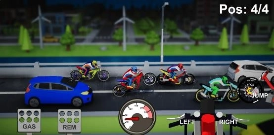 左右晃动手机,以此操控摩托车的行进方向,避开道路上那些会妨碍你行驶的车辆。