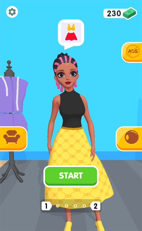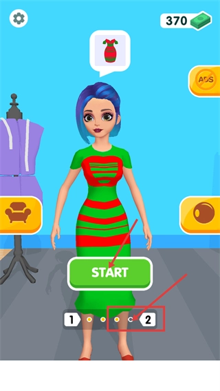 点击【START】按钮,启动第【2】阶段的服装改造任务,按照上方的服装图标进行设计。