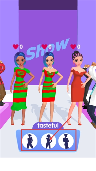 在秀场里挑选【tasteful】风格所对应的造型,去参加时尚展示活动,和其他设计师的作品一同登台比拼。