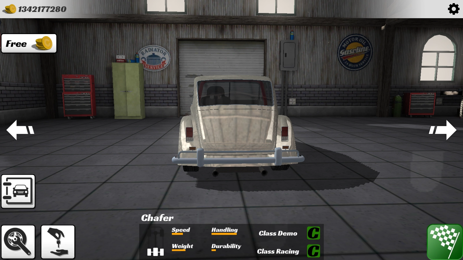 车库里停放着各式各样风格的赛车,只要消耗金币就能轻松将它们收入囊中,整个过程毫无难度可言。