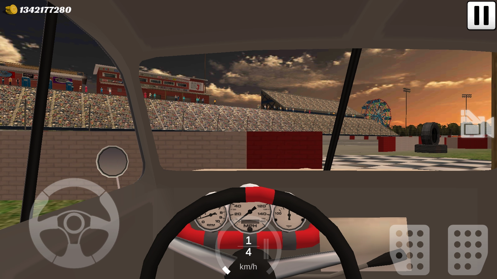 挑选一个赛道,立刻开启比赛,左边的方向盘能够操控车辆的转向。