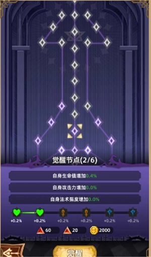 【通关6-2的boss关卡后解锁该功能】玩家能够消耗对应的觉醒石资源为英雄进行觉醒操作,英雄完成觉醒后,其自身的各项属性都会得到提升,此外,部分英雄觉醒后还可以进一步增强全队的属性。