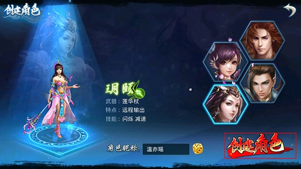 玩家进入游戏后,可从四个职业中挑选其一创建角色。