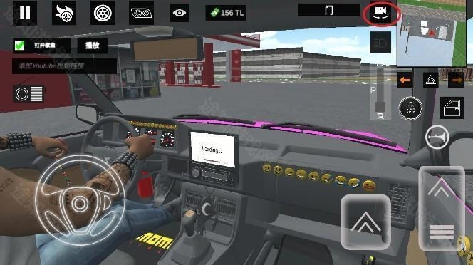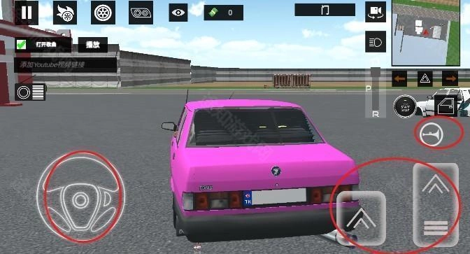 左侧是方向盘,右侧依次是油门刹车,和喇叭。