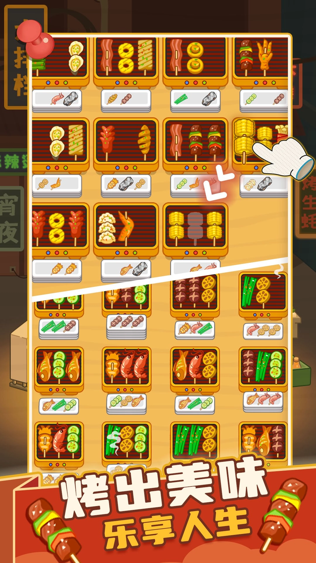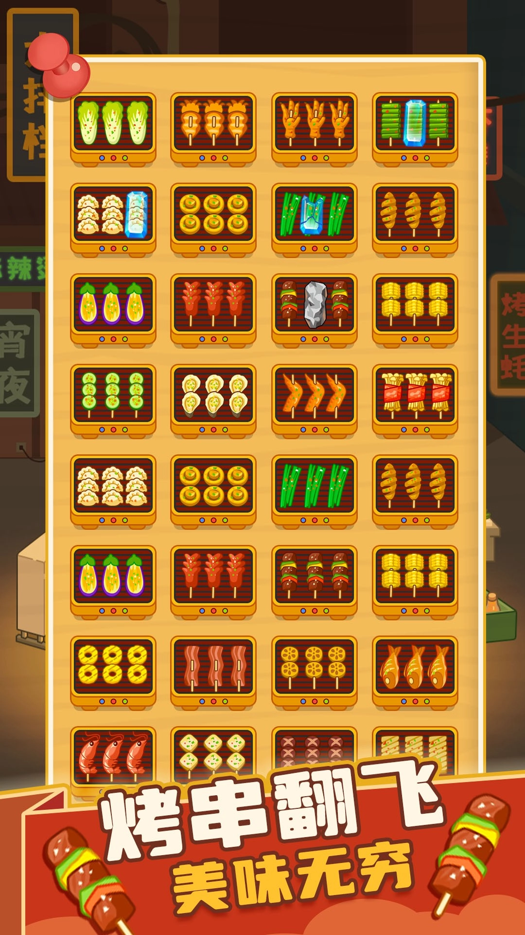 《疯狂烧烤摊最新版》是一款围绕烧烤主题打造的休闲益智三消游戏,玩家将化身烧烤摊老板,借助拖动与点击的操作方式,把相同的烤串进行排列消除,以此解锁全新食材、装扮个性摊位,尽情感受轻松解压的烧烤经营趣味。该游戏巧妙融合了三消玩法与模拟经营元素,十分适合利用碎片时间来休闲娱乐。