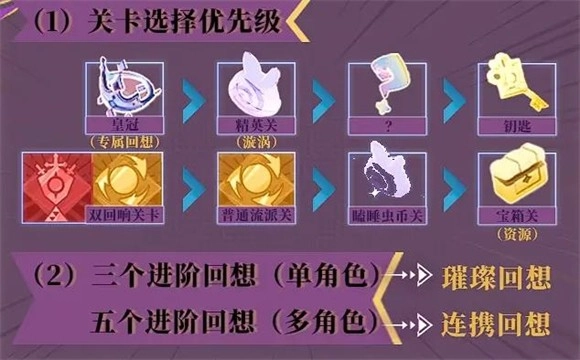 人物养成包含三个维度:人物等级(上限)、回响等级和灵装(圣遗物)。建议将常用的回响角色的回响等级至少提升至三级,因为达到三级后会解锁该梦灵的璀璨回响。