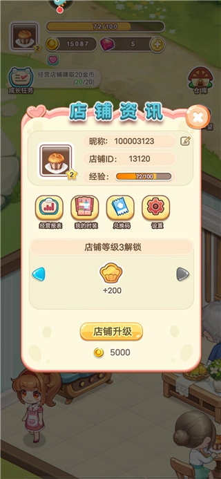 店铺等级提升后,可解锁新设备与新甜品,以此增强店铺的吸引力和竞争力。