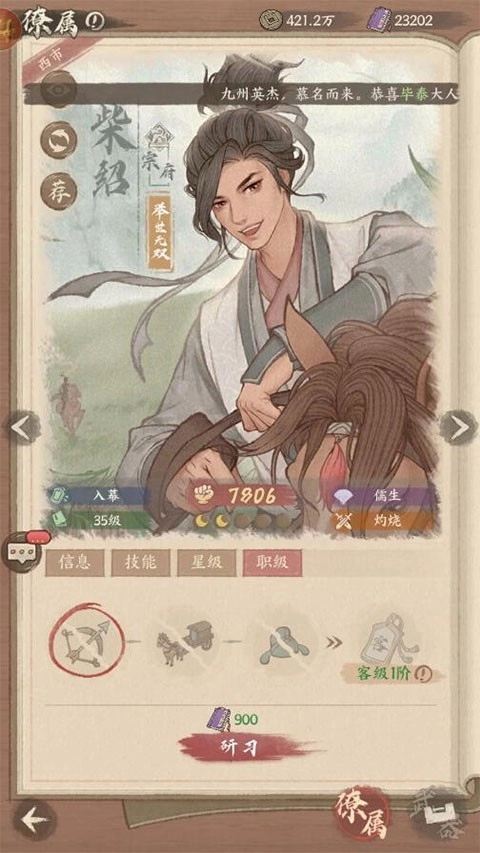 提升等级后点击星级进行升星,升星后既能解锁对应的技能效果,也能提升战斗与经营属性。