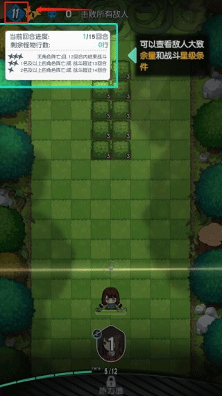 点击游戏左上方图示位置,就能查看剩余敌人数量以及战斗星级条件。