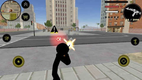 左侧控制移动与加速,右侧对应绳索和攻击(含跳跃功能),跳跃键独立设置;屏幕右上侧的武器切换、血量及经验值均实时刷新,信息清晰直观。玩家可自由选择玩法,与其他帮派成员展开交火——击杀敌人能获取经验,连续击杀会累积星级,届时警察与周边角色将对你重点“关照”,发起猛烈攻击。如何在激战中存活、并成功消灭对手,便是你需要完成的核心任务。