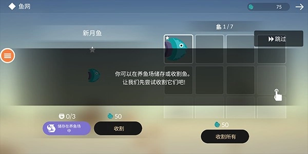 你可以把鱼拿起来卖掉或者放进水族馆,收割到的鱼肉用途可不少呢!能用来提升各类设施的等级哦~