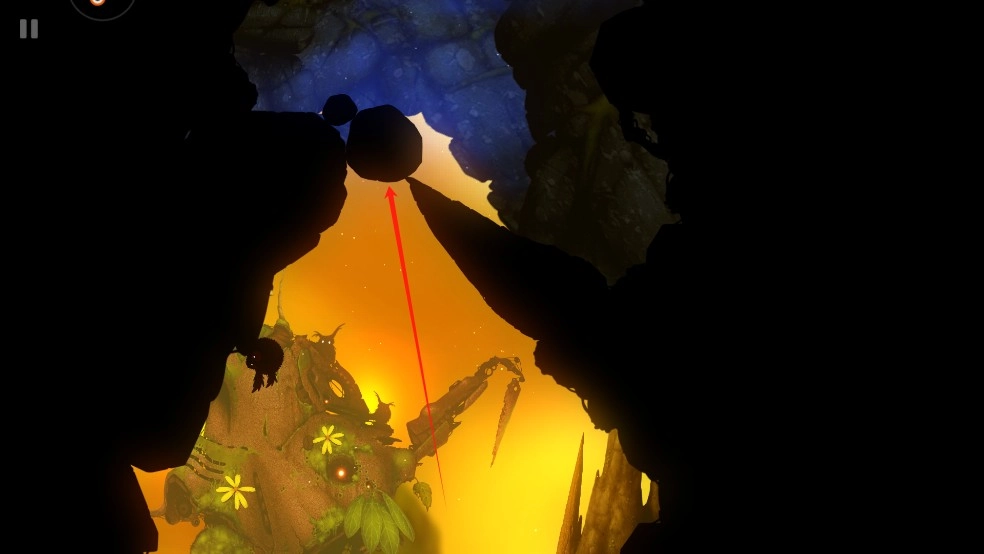 游戏画面会持续追赶小精灵,一旦画面没能追上小精灵就会直接失败,所以要冲破这块石头,别让画面追赶上它。