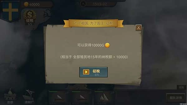 当资金紧张时,可以通过“征税”功能快速获取金币。