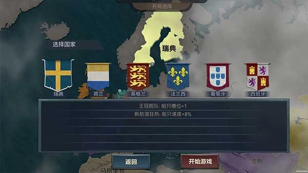 在确认游戏难度后,你可以依据自己的喜好挑选国家,接着点击“开始游戏”按钮,就能顺利进入游戏世界了。