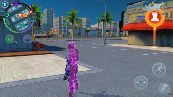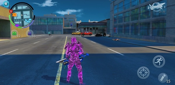 任务要求是在擂台上避免被击倒,只要贴近对手发动猛攻就能获胜。到了后期被警察追击时,点击目标就能自动锁定并射击,把敌方摧毁就能顺利通关。