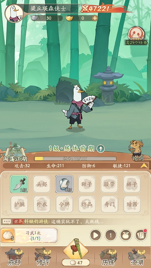 提升习武等级后,后续获取的装备整体品质会得到增强。