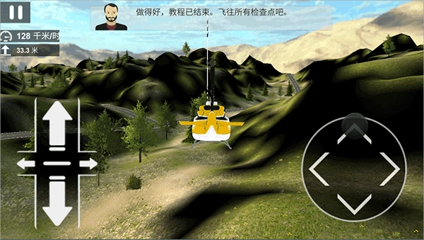 按照屏幕左右两侧的提示,完成拉升、转向等操作,灵活操控直升机的飞行方向。