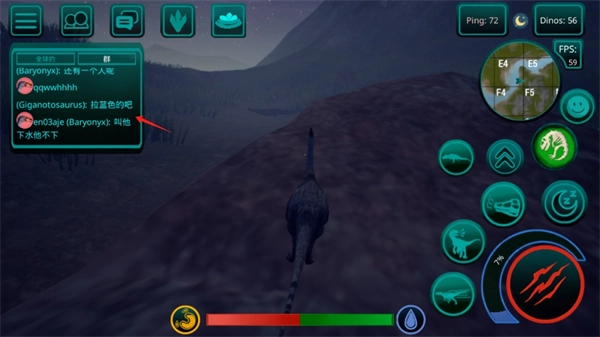 不同种类的恐龙获取食物的方式各有不同。要是你选择的是掠食性恐龙,就得通过猎杀其他玩家操控的恐龙来获取肉类;但如果选的是植食性恐龙,那就要去寻找特定的蕨类植物来补充自身的能量。另外,地图上分布的湖泊和水塘,都能供你饮水使用。