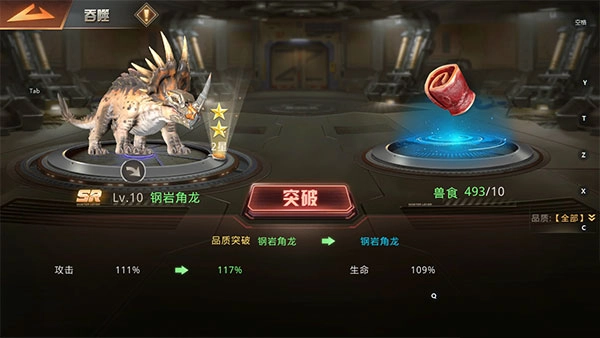 第三种方式适用于紫色SR级巨兽。突破时能获得技能点奖励,这些技能点可用于提升品质,进而间接增强资质。尽管单次提升的幅度不大,但长期积累下来,效果会非常显著。