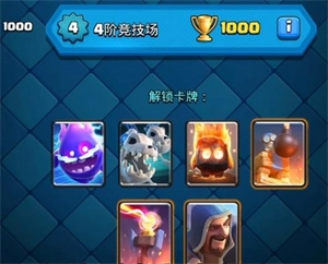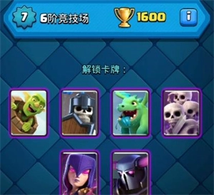 当等级达到6阶时,史诗卡牌就会解锁,此时对手的实力也会提升,你可以试着把哥布林牢笼替换成骷髅军团。接下来的目标就是不断挑战新的竞技场来解锁更多卡牌,像冰雪精灵、闪电法术、吹箭哥布林这类强度较高的卡牌都是不错的选择。