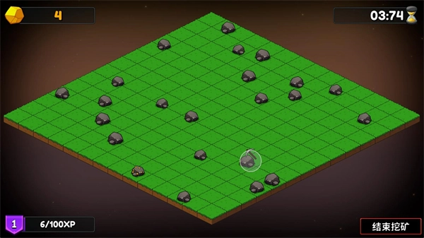 正式启动后,点击矿石即可开展挖矿操作,悬浮球覆盖范围内的全部矿石都会被自动采集。