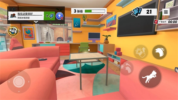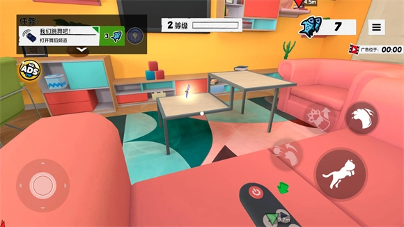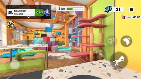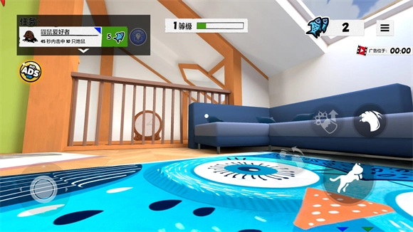 进入地图后,左侧负责操控猫咪移动,右侧则用于控制猫咪的跳跃与互动。