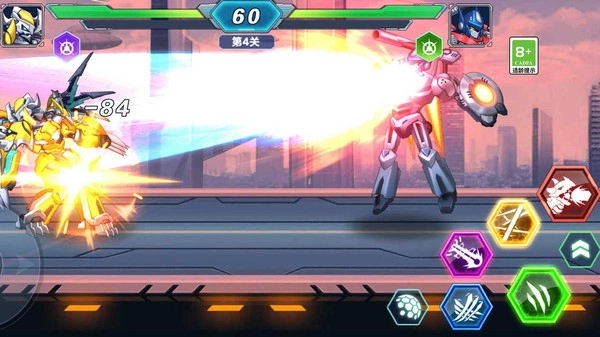 酷炫机甲风,横屏格斗类游戏,玩起来很棒。