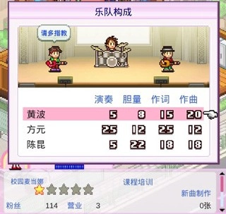 在创作新曲的过程中,无论是选择乐队成员还是已经引退的人员,都要挑选那些与你想要提升的领域所需创意相契合的人。这些人在参与作词和作曲工作时,能够为该创意增加基础点数,进而降低你自身需要投入的点数。