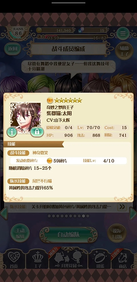 注意:以前很多人打的分数挑战,我会选最后一个带增加时间和封印技能的怪,再带上能解封印的王子。练度够了的话,其实你想带谁都可以(划掉)。