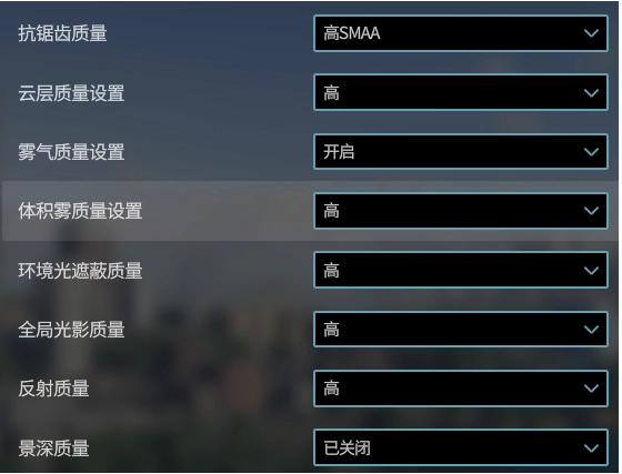 首先在综合页面将性能优先调整为帧率优先,并且在画面设置中把雾气质量选项关闭。